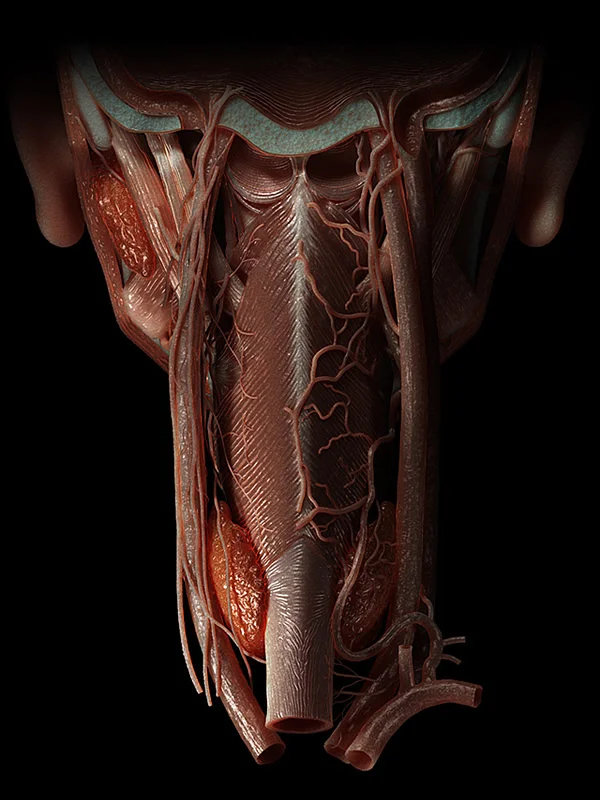 Posterior view of the pharynx in CGI. I named this one "Anatomy Noir". Enjoy.